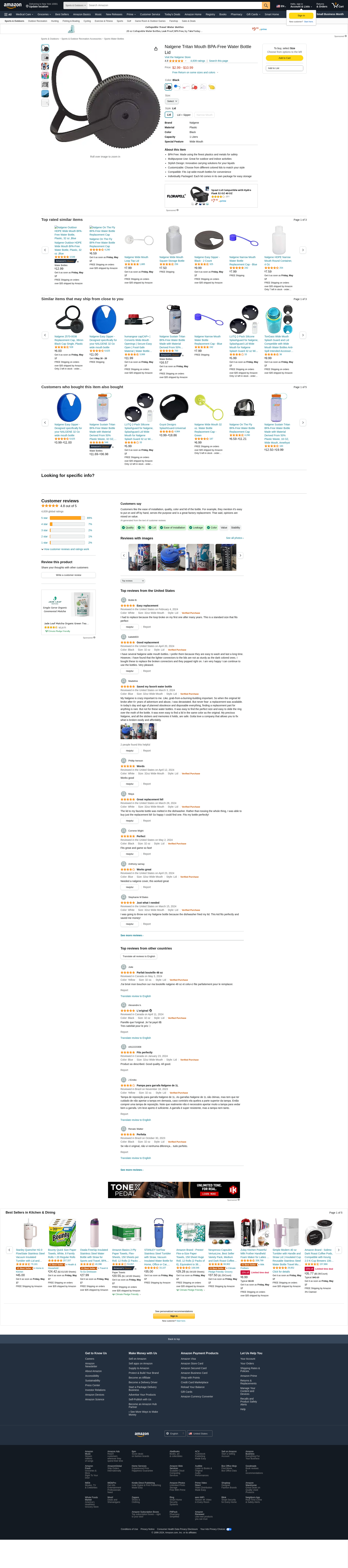 Nalgene Tritan Wide Mouth BPA-Free Water Bottle Lid, Black, 32 oz