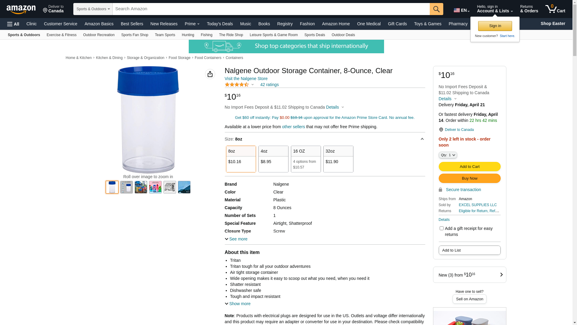 Nalgene Outdoor Storage Container, 8-Ounce, Clear