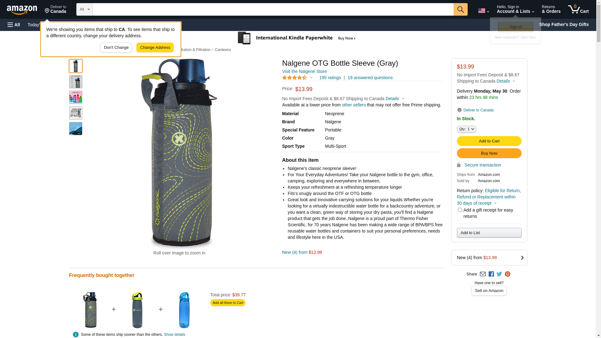 Nalgene 341659 On-The-Go Bottle Sleeve - Gray