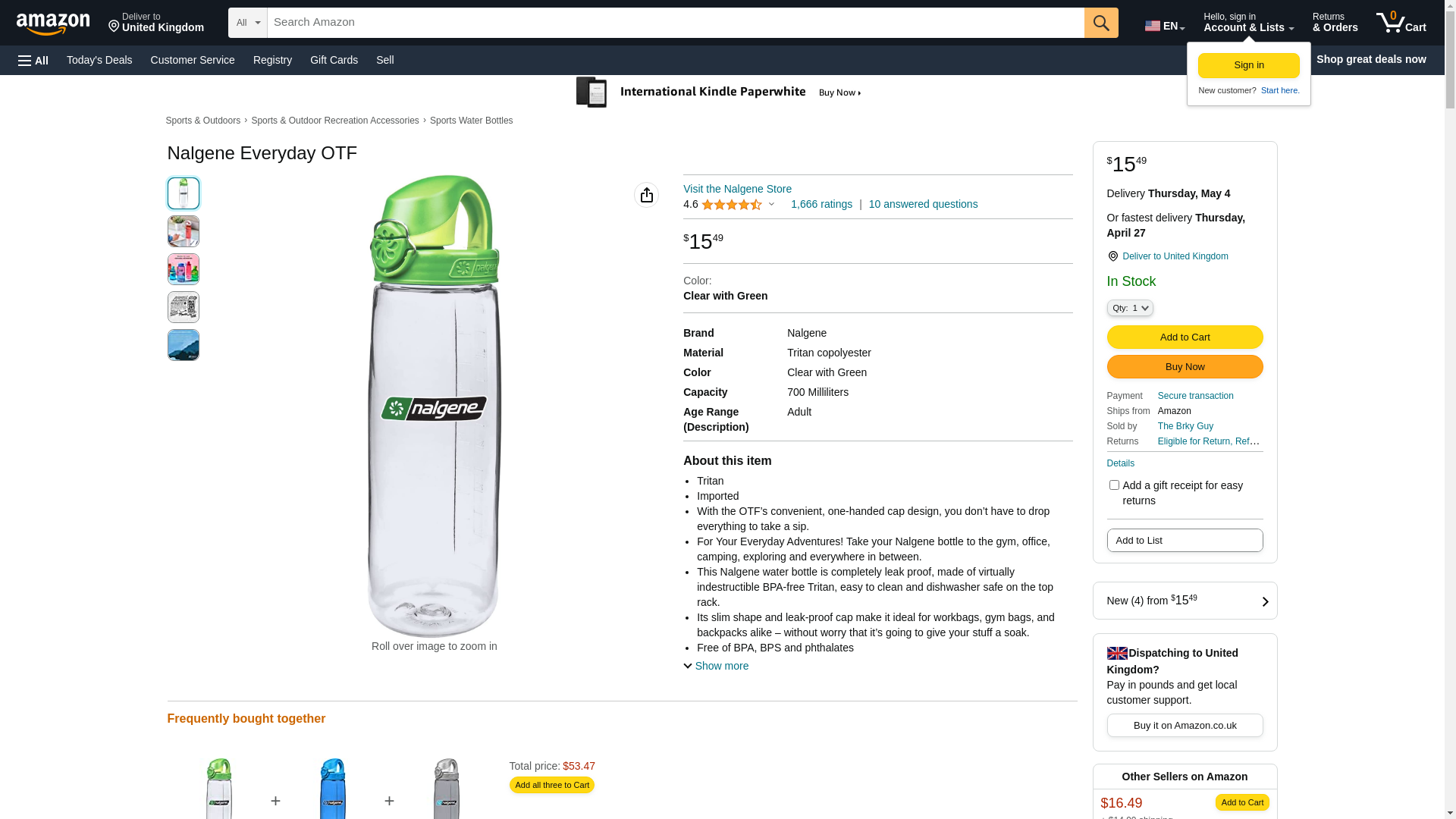 Nalgene Tritan On The Fly Water Bottle, Clear with Green, 24Oz