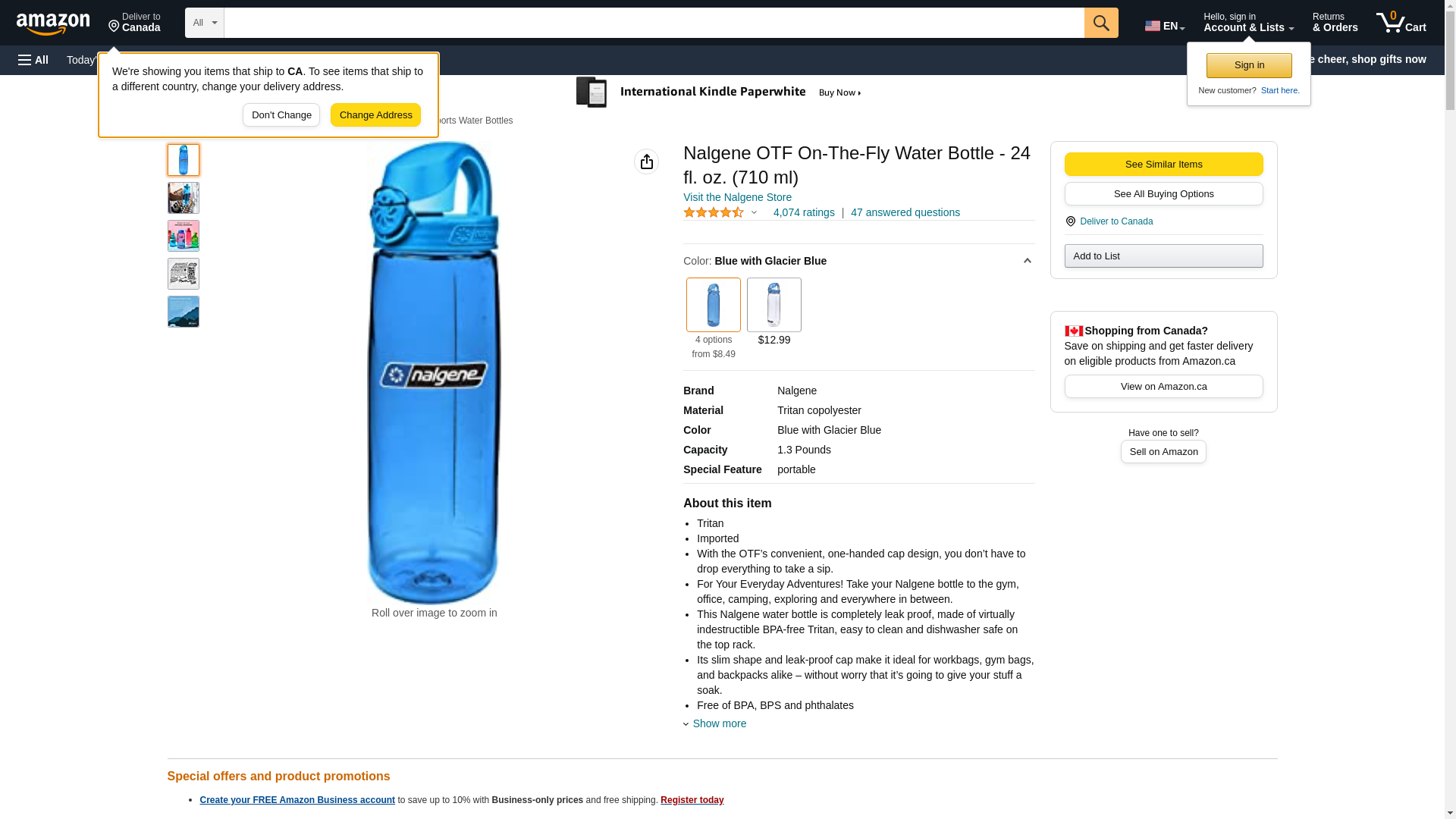 Nalgene Tritan On The Fly Water Bottle, Blue with Glacial Blue, 24Oz