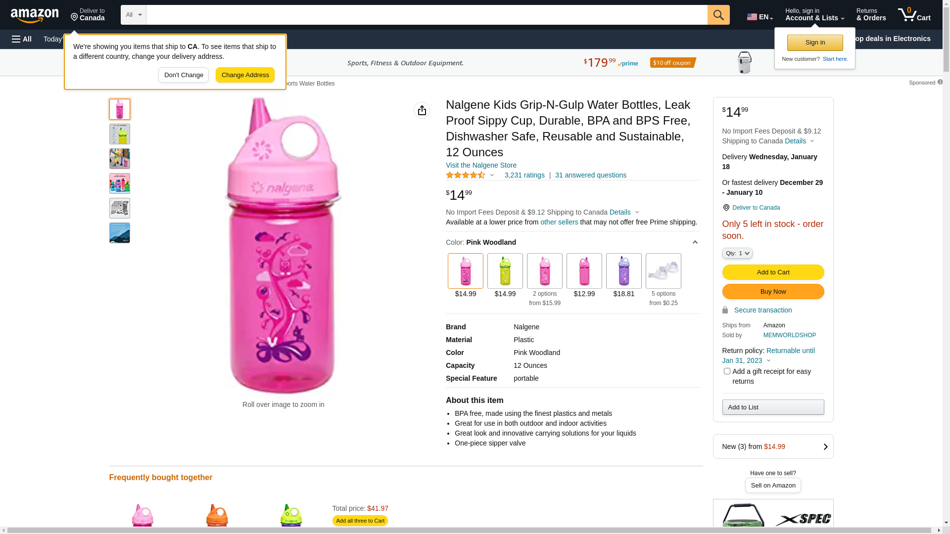 Nalgene Grip 'n Gulp Bottle, Pink Woodland, 12oz (341934)
