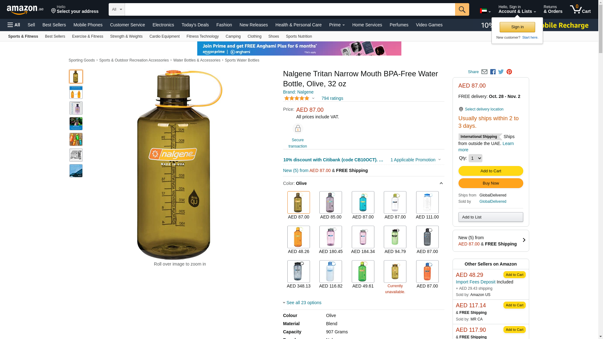 Nalgene Tritan Narrow Mouth BPA-Free Water Bottle, Olive, 32 oz
