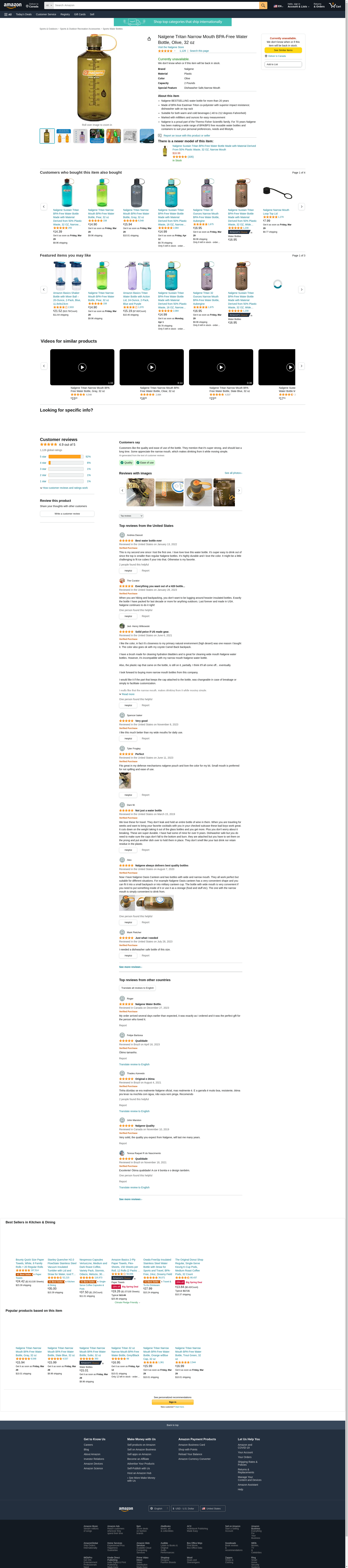 Nalgene Tritan 32 oz Narrow Mouth BPA-Free Water Bottle, Olive