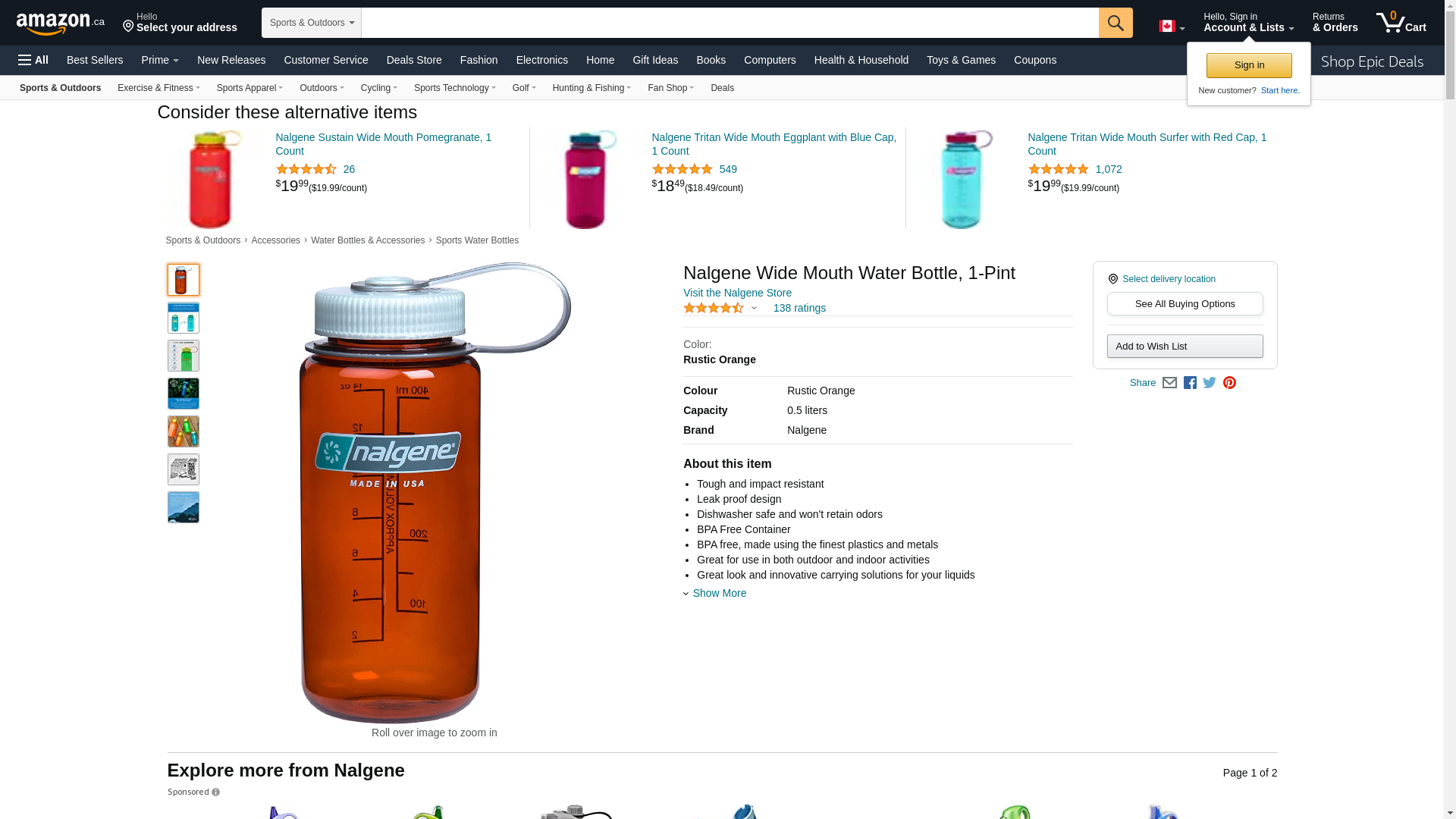 Nalgene Tritan Wide Mouth BPA-Free Water Bottle, Rustic Orange, 16 oz