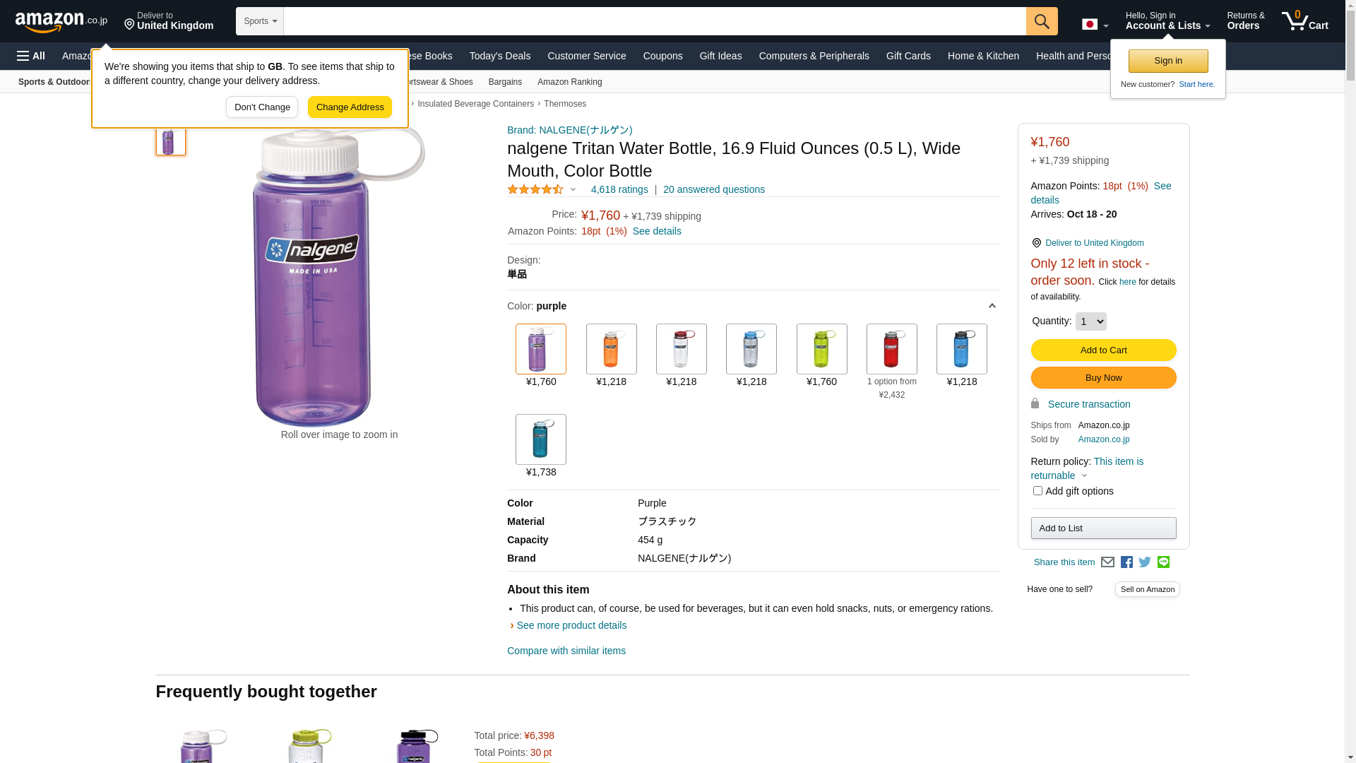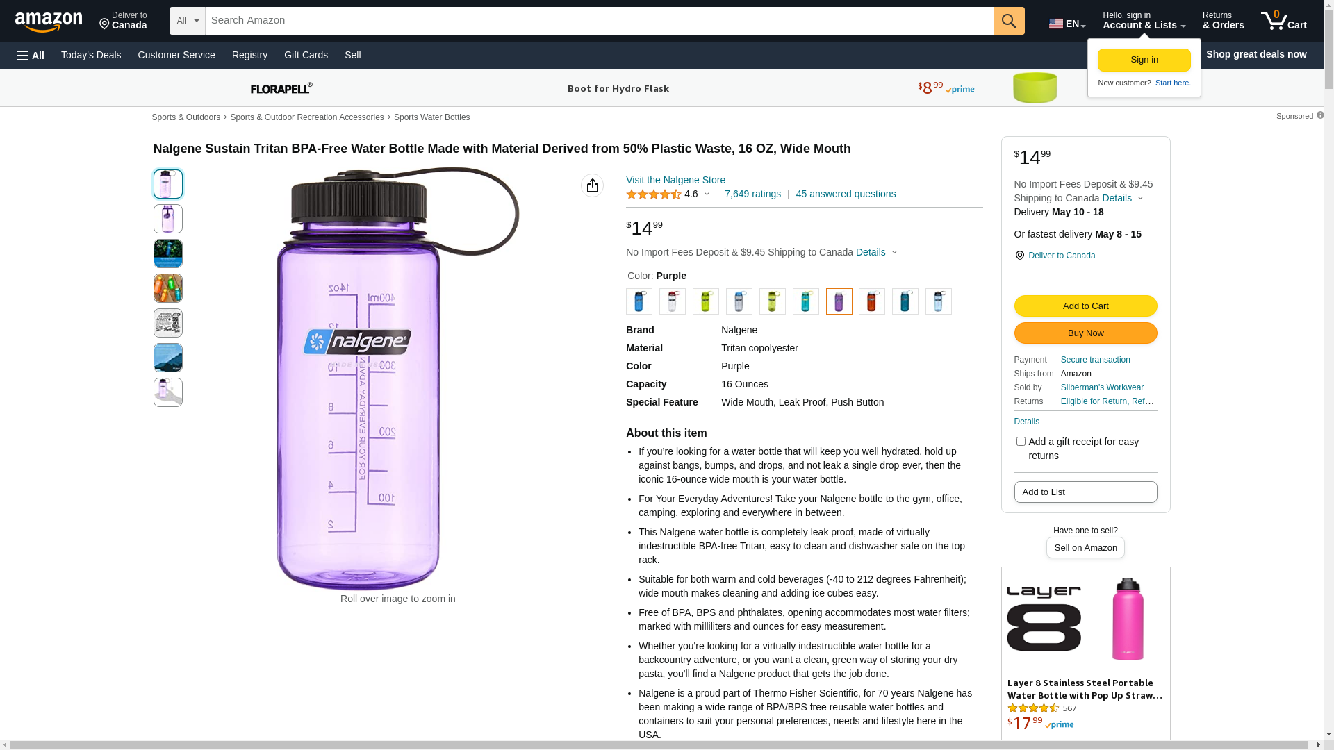 Nalgene Tritan Wide Mouth BPA-Free Water Bottle, Purple, 16 oz
