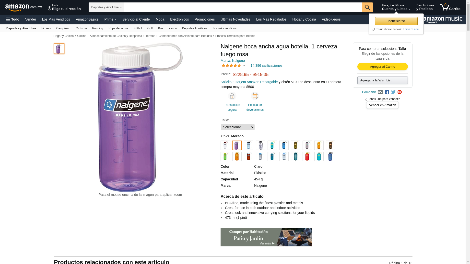 Nalgene Tritan Wide Mouth BPA-Free Water Bottle, Purple, 16 oz (342056)