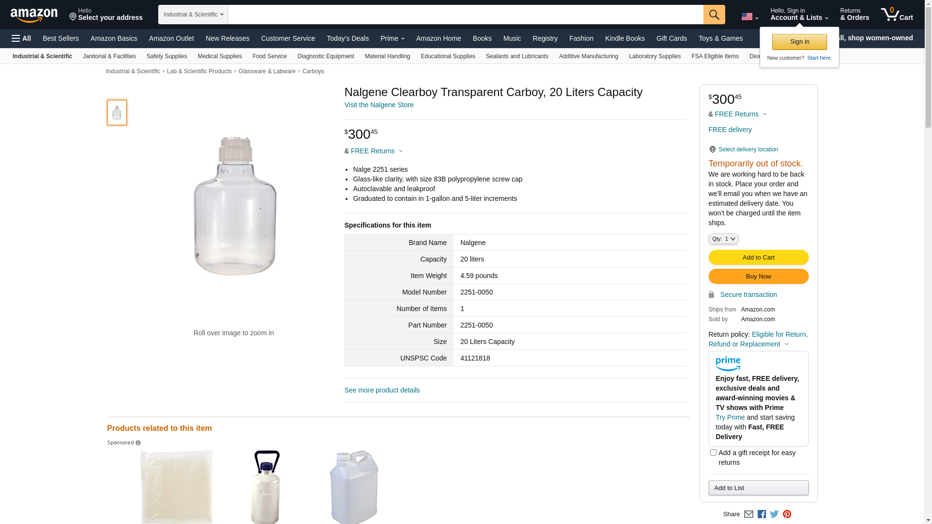 Nalge Nunc Clearboys Carboys, Polycarbonate, NALGENE 2251-0050, Each (20