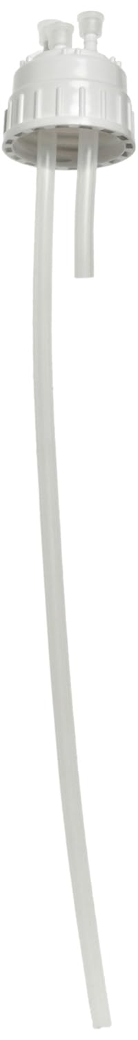 This two-port Quick Filling/Venting Closure forms a convenient aseptic fluid transfer system for any large Nalgene carboy or bottle that accepts 53B closure. Includes Nalgene 50 platinum-cured 1/4 inch silicone tubing. Socket fittings in the autoclavable 53B polypropylene cap with TPE gasket have internal valves that seal when a tubulation fitting is removed so that container seal integrity is maintained. Ideal for aseptic liquid transfer of media biological reagents and chemicals to and from carboy. Material: white polypropylene cap TPE gasket TPE port caps and Nalgene 50 platinum-cured silicone tubing. Tubing size I.D.: 1/4 inch. Number of ports: 2. Closure size: 53B. Overall height (w/o tubing) x diameter: 2-3/4 x 2-5/8 inches (68.6 x 66.7mm). Autoclavable. Nalgene #: 2162-0531.
