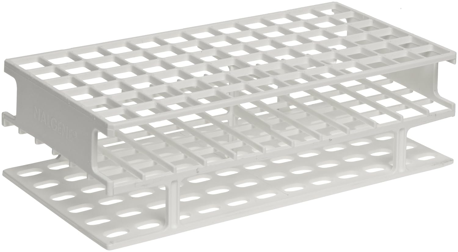 This 13mm half-rack Unwire test tube rack is more space-efficient than full-size test tube racks. This half-rack holds thirty-six 13mm test tubes or centrifuge tubes in a 6 x 6 array. Fits easily in ice or water baths and won't float. It has all the features of full-size Unwire test tube racks. Molded in white acetal plastic with Resmer manufacturing technology which makes the rack keep its bright color longer. Useful in a wide temperature range with good chemical resistance. Autoclavable. Color: white. Material: acetal plastic. Dimensions (L x W x H): 102 x 102 x 56mm. Capacity: 36 tubes. Tube diameter: 13mm. Array: 6 x 6. Nalgene #: 5972-0013.