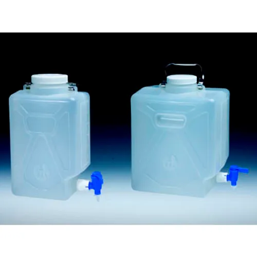- Rectangular carboy for storing and dispensing media, sterile water, etc.