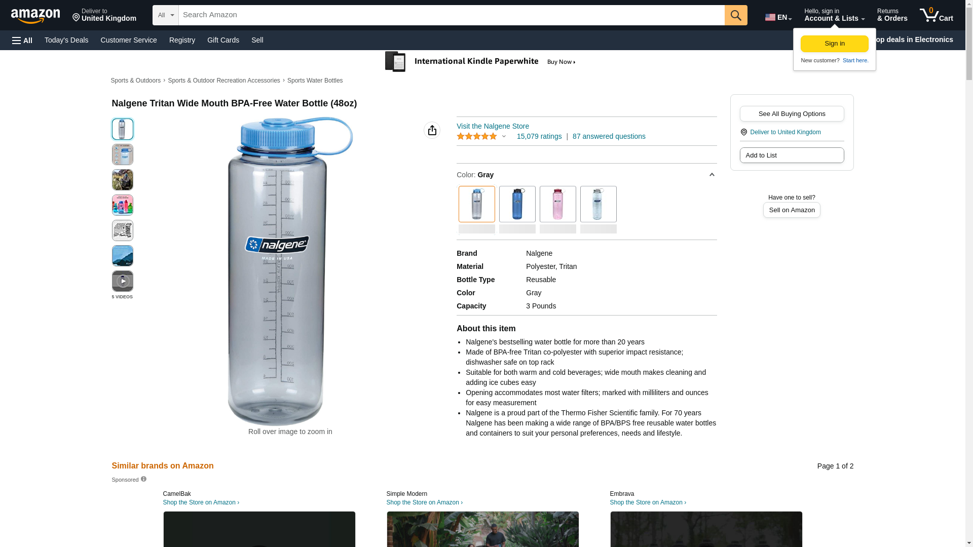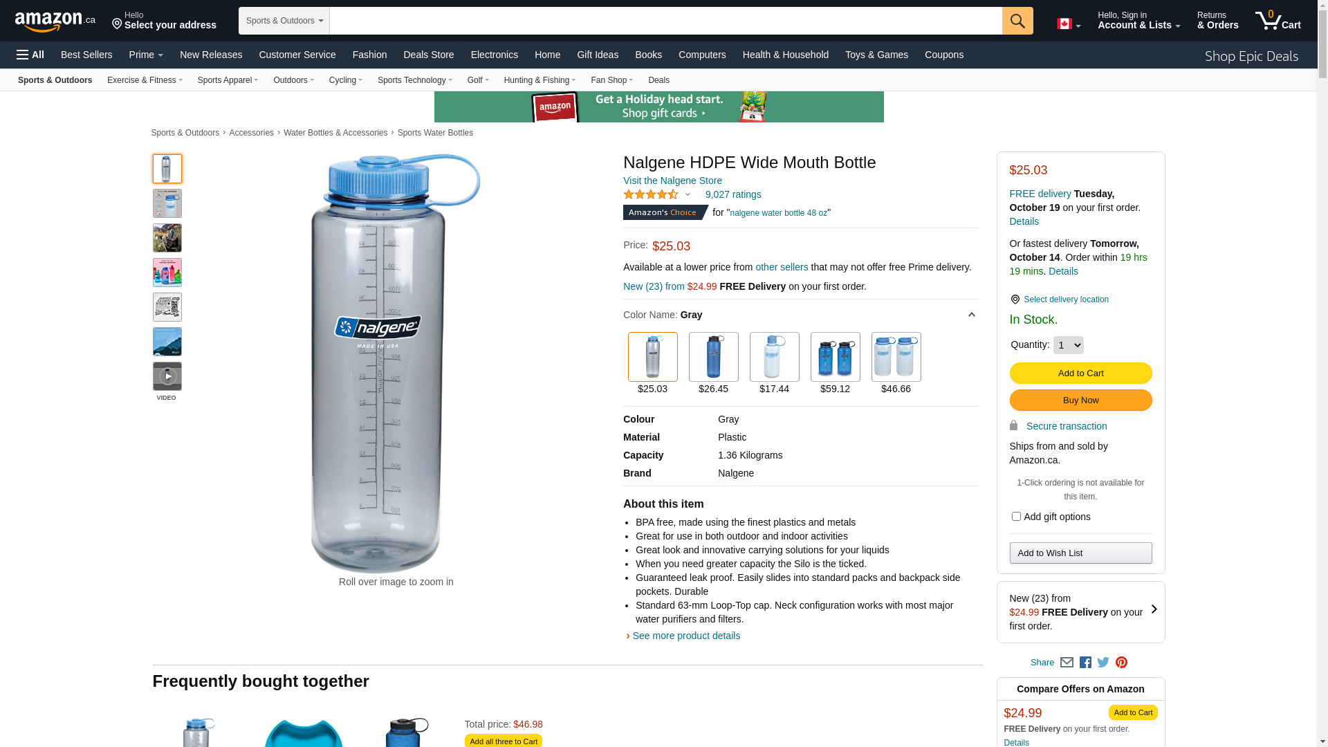 Nalgene HDPE Wide Mouth Water Bottle, Gray, 48 oz