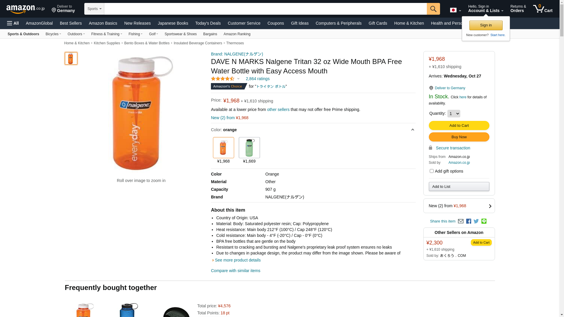 Nalgene BPA Free Tritan Wide Mouth Water Bottle, Orange, 1-Quart