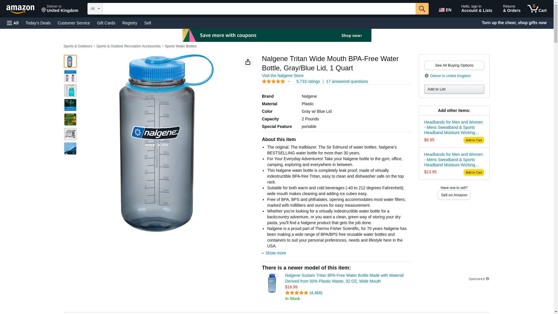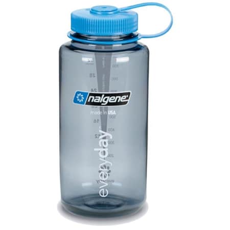 Nalgene Tritan Wide Mouth BPA-Free Water Bottle, Gray/Blue Lid, 1 Quart