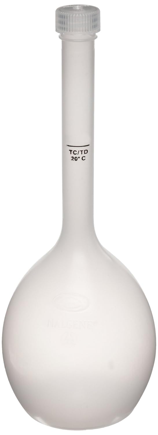 - Offers accuracy of standard glass flasks combined with break resistance of plastic; graduated