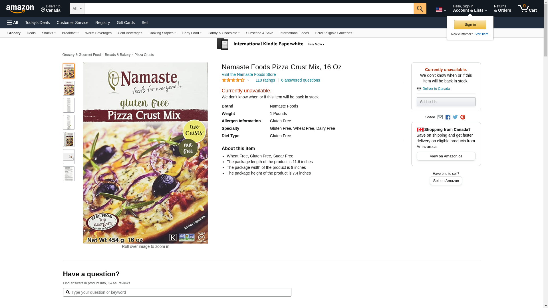Namaste Foods, Gluten Free Pizza Crust Mix, 16-Ounce (Pack of 6)