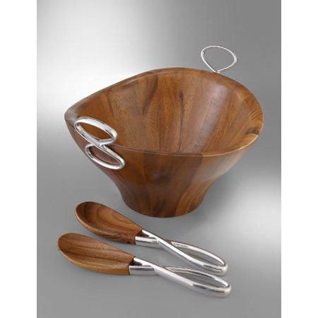 <b>Nambe Infinity Salad Bowl with Servers</b> <br /> <b>Features:</b> <ul> <li>Nambe alloy with acacia wood</li> <li>Design by Wei Young</li> <li>All Nambe pieces are everyday art that are designed to be used</li> <li>Nambe is hand-crafted, no two pieces are exactly alike</li> <li>Hand wash recommended</li> </ul>