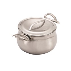 Our 5-Quart Soup Pot with Lid has gently curved sides that help to keep moisture from evaporating and flavors rich. This handsome piece was designed for stocks, soups, stews, and more, with a generous size to help ensure ingredients stay immersed. Our CookServ collection of cookware is the ultimate blending of artful elegance and high-performance culinary innovations, featuring 5-ply stainless steel construction with and aluminum core for fast, even heat distribution. And with its elegant belly shape and stylish curved handles, this is a piece that can move from the stovetop to the dinner table no matter what the occasion.