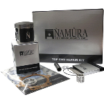 Namura Part #NA-10025-3K<br /><br />Top End Repair Kit<br><br><ul><li>Top End kit includes: piston, rings, wrist pin, clips, top end bearing, and gasket kit</li><li>MOS2 (Teflon/Molybdenum) Coated Skirts - A rolled on application process provides a bond that is 10 times stronger than other spray on coatings. Benefits include increased heat transfer, reduced friction and helping to eliminate cold seizures</li><li>Machined Smooth Heads - Reflects combustion heat and reduces carbon buildup, protecting the top of the piston. Some tests have shown this feature can increase horsepower and fuel economy by up to 6%</li><li>Anodized Domes - Increases heat resistance and durability; pistons with anodized domes are 75% stronger than non-anodized pistons</li><li>Hypereutectic Casting Process - Provides higher silicon content for reduced expansion rates and additional wear resistance; it also has an ability to withstand higher cylinder temperatures</li></ul><br /><br />Package Quantity = 1