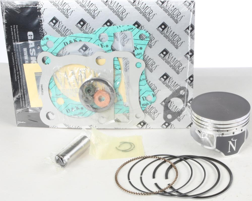 Namura Top-End Rebuild KitContains: Piston Kit(s) and Top-end gaskets above the base gasket to reassemble cylinder(s) Piston Size: 66.97 mmCompression Ratio: 9.2:1</br>* Actual Contents may vary from Photo</br>* Consult a reputable performance shop for proper Ring End Gap</br></br>Namura offers direct replacements for the original equipment as well as hi-compression and a variety of oversizes to meet your ride's needs. </br>