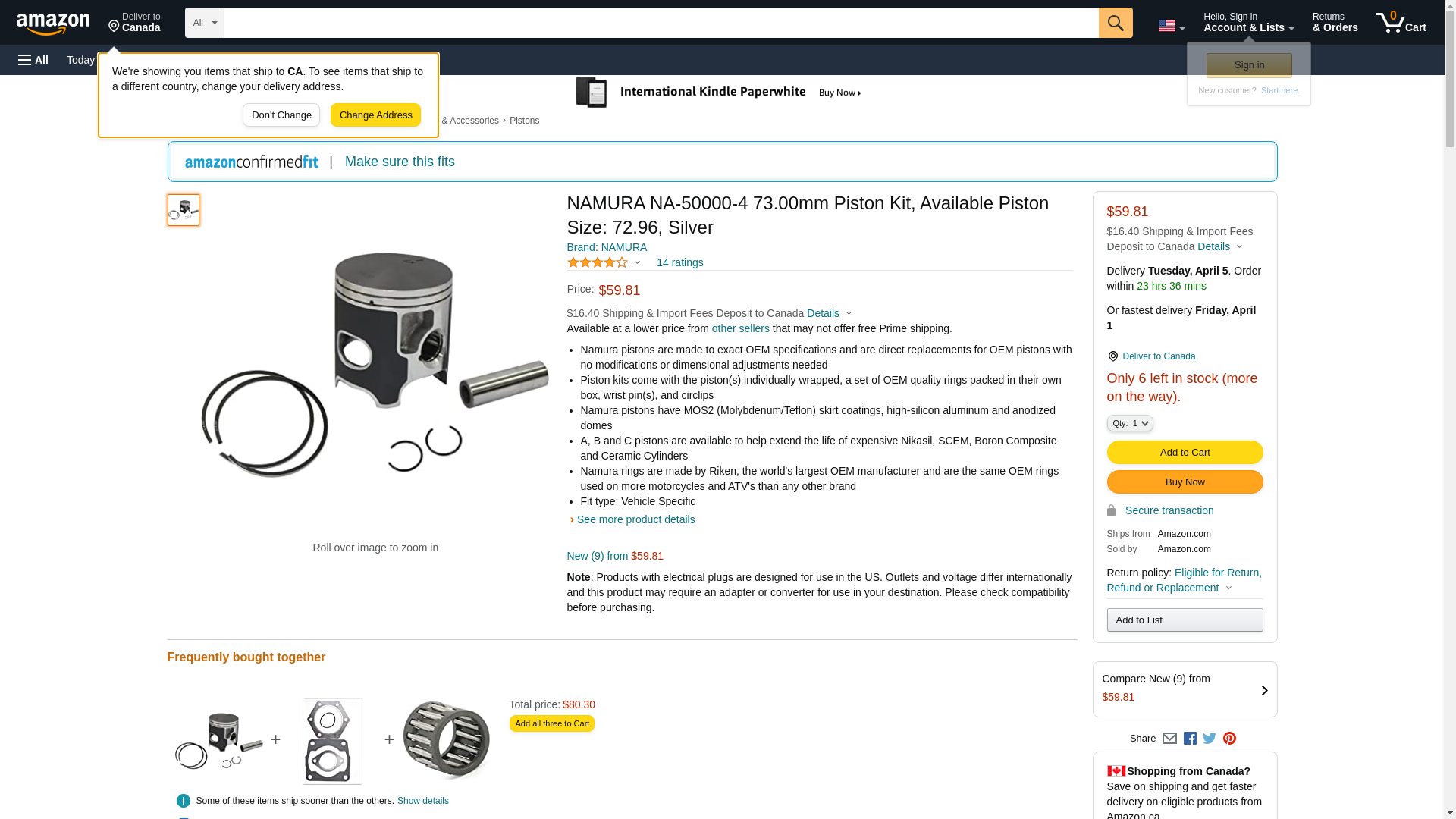 NAMURA NA-50000-4 73.00mm Piston Kit, Available Piston Size: 72.96, Silver
