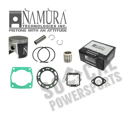 NAMURA TOP END REPAIR KIT. * & nbsp; Top end repair kits include: Pistons, rings, and top end gasket sets. * & nbsp; Namura Pistons have molybdenium/teflon skirt coatings which minimizes resistance and wear and anodized domes which provide superior heat or resistance. * & nbsp; Both of these features help to extend the life span of the pistons. & nbsp; * & nbsp; Rings will fit OEM pistons . & nbsp; * & nbsp; & nbsp;Namura Top End Gasket Sets are precision cut Klingersil coated steel head gaskets for better sealing and high-temp resistance.