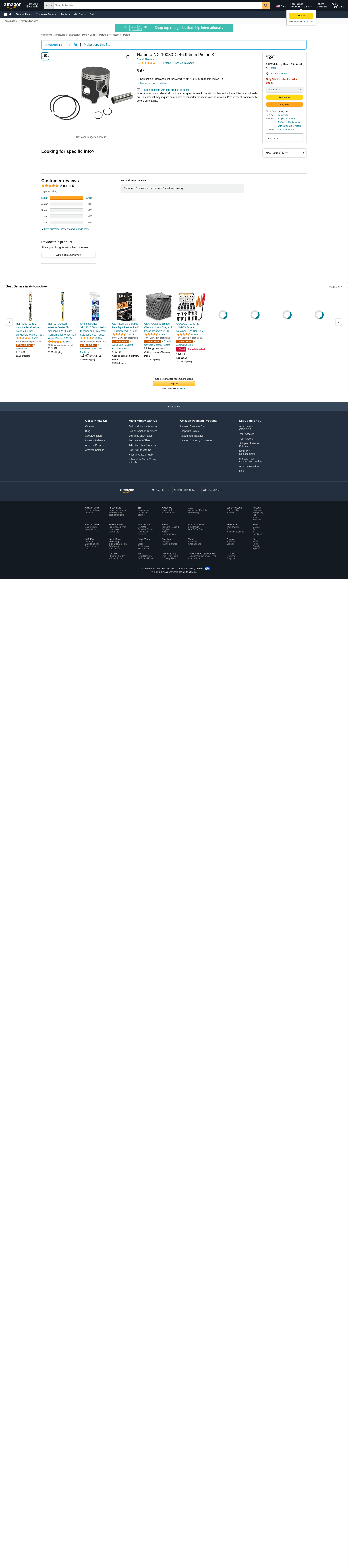 Namura NX-10080-C 46.96mm Piston Kit