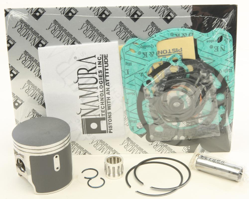 Namura Top-End Rebuild KitContains: Piston Kit(s) and Top-end gaskets above the base gasket to reassemble cylinder(s) Piston Size: 52.44 mm</br>* Actual Contents may vary from Photo</br>* Consult a reputable performance shop for proper Ring End Gap</br></br>Namura offers direct replacements for the original equipment as well as hi-compression and a variety of oversizes to meet your ride's needs. </br>