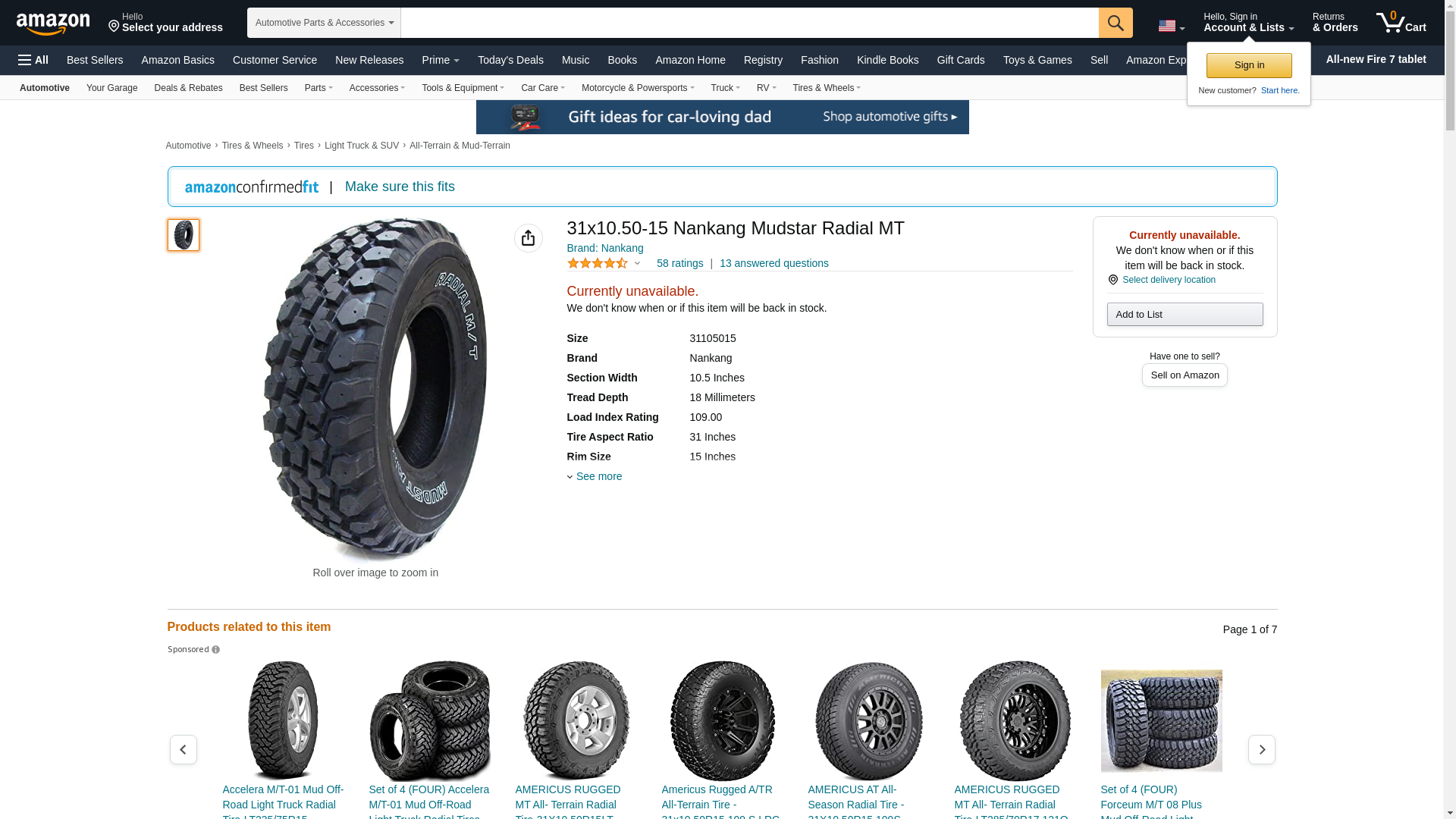 31x10.50-15 Nankang Mudstar Radial MT