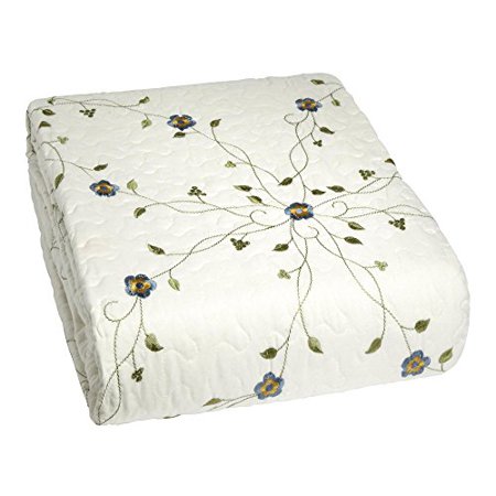 Embroidered florals give this cover traditional elegance. The lovely design adds style to the comfort and warmth within its textured quilting.