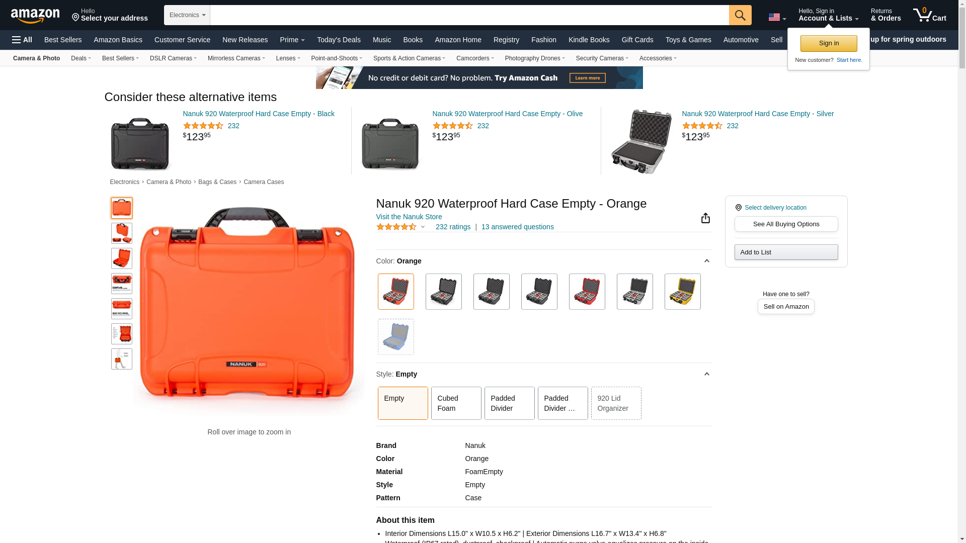 Nanuk 920 Waterproof Hard Case Empty - Orange