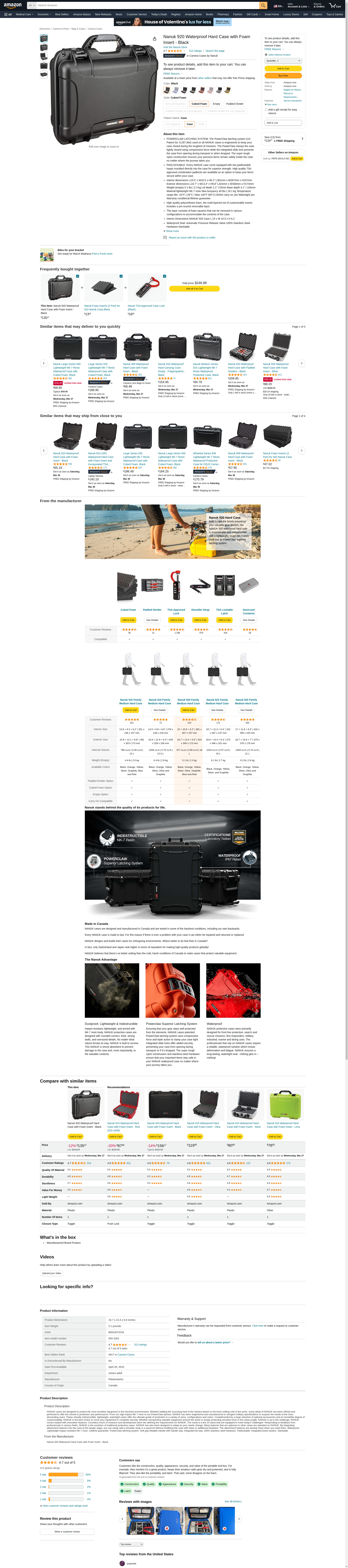 | Feature | <b>Price For:</b> Each <b>Standards</b>: ATA 300 (Impact Test), ASTM D4169 (Falling Rain-Vibration-Drop Tests), Mil-STD-810F (Immersion Test), IP 67 (Ingress Protection Tests-Dust and Immersion). Meets Airline Carry-On Regulations <b>Material</b>: Lightweight NK-7(TM) Resin <b>Latch</b>: Powerclaw(TM) Latching System <b>Lid Depth</b>: 2-7/64" <b>Inside Width</b>: 10-1/2" <b>Overall Length</b>: 16-11/16" <b>Mfr. Series</b>: 920 <b>Inside Length</b>: 15" |