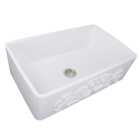 Nantucket Sinks FCFS3320S-Filigree 33-Inch Farmhouse Fireclay Sink with Filigree Apron in White Porcelain Enamel Glaze