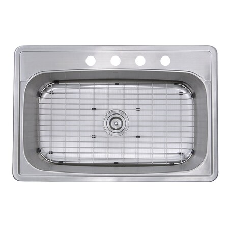Madaket Collection NS3322-8 33" Rectangle Single Bowl Drop In Kitchen Sink with 18 Gauge 304 Stainless Steel, Bottom Grid and Rubber Padding in Brushed Stain Finish