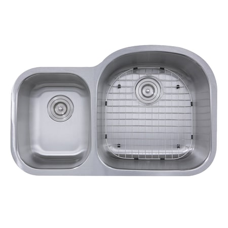 Nantucket Sinks NS7030-R-16 70/30 Reverse Double Bowl 16 Gauge Undermount Stainless Steel Kitchen Sink, 32.5"