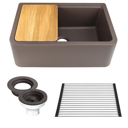 Nantucket Sinks PR3020-APS-BR Plymouth Collection 30-inch Reversible Workstation Granite Composite Apron Sink with Accessory Pack in Brown