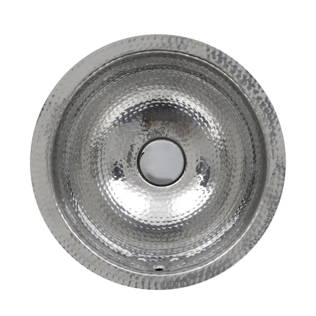 Nantucket Sink's round hand hammered stainless steel lavatory sink is designed to be undermounted. Make a statement with this show-stopping sink! Size may vary slightly due to the hand made nature of this sink. Made of 18 gauge stainless steel, a material traditionally found in kitchen sinks and known for its durability our Brightwork Collection sinks now offer an array of styles in stainless! All the shine an glamour without the maintenance! Durable 18 gauge stainless steel will endure while adding sparkle to your bathroom or powder room. Make a focal point of a room with this Nantucket Sinks ROS-OF unique sink. This sink features an overflow. Easy occasional polishing will keep it lustrous for a lifetime.,Our Brightwork Collection is a curated assortment of specialty metal sinks inspired