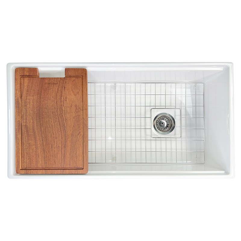 NANTUCKET SINKS T-PS36W CAPE COLLECTION 36 INCH REVERSIBLE WORKSTATION FARMHOUSE FIRECLAY SINK WITH OFFSET DRAIN AND...