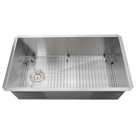 Nantucket Sinks ZR3218-OSD 32 inch Single Bowl Undermount Small Radius Stainless Steel Kitchen Sink, Offset Drain in Brushed Satin