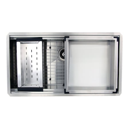 Nantucket Sinks' ZR-PS-3620-16 - 36 Inch Pro Series Large Prep Station Single Bowl Undermount Stainless Steel Kitchen Sink with Compatible Accessories