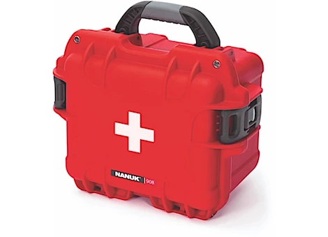 Nanuk Case 908 empty w/First Aid Logo - Red, Interior (L x W x H): 9.5 in x 7.5 in x 7.5 in (908-FSA9)