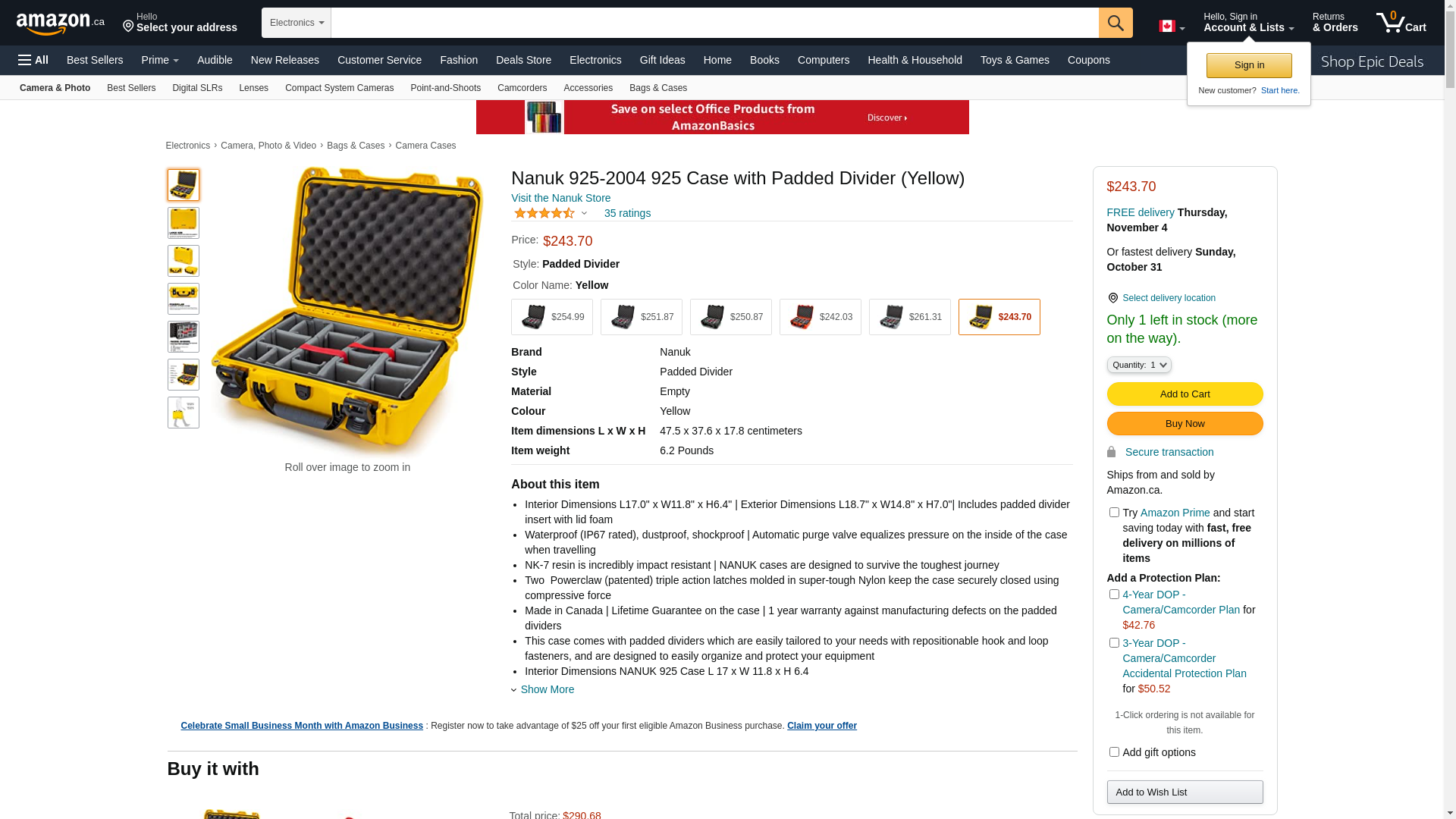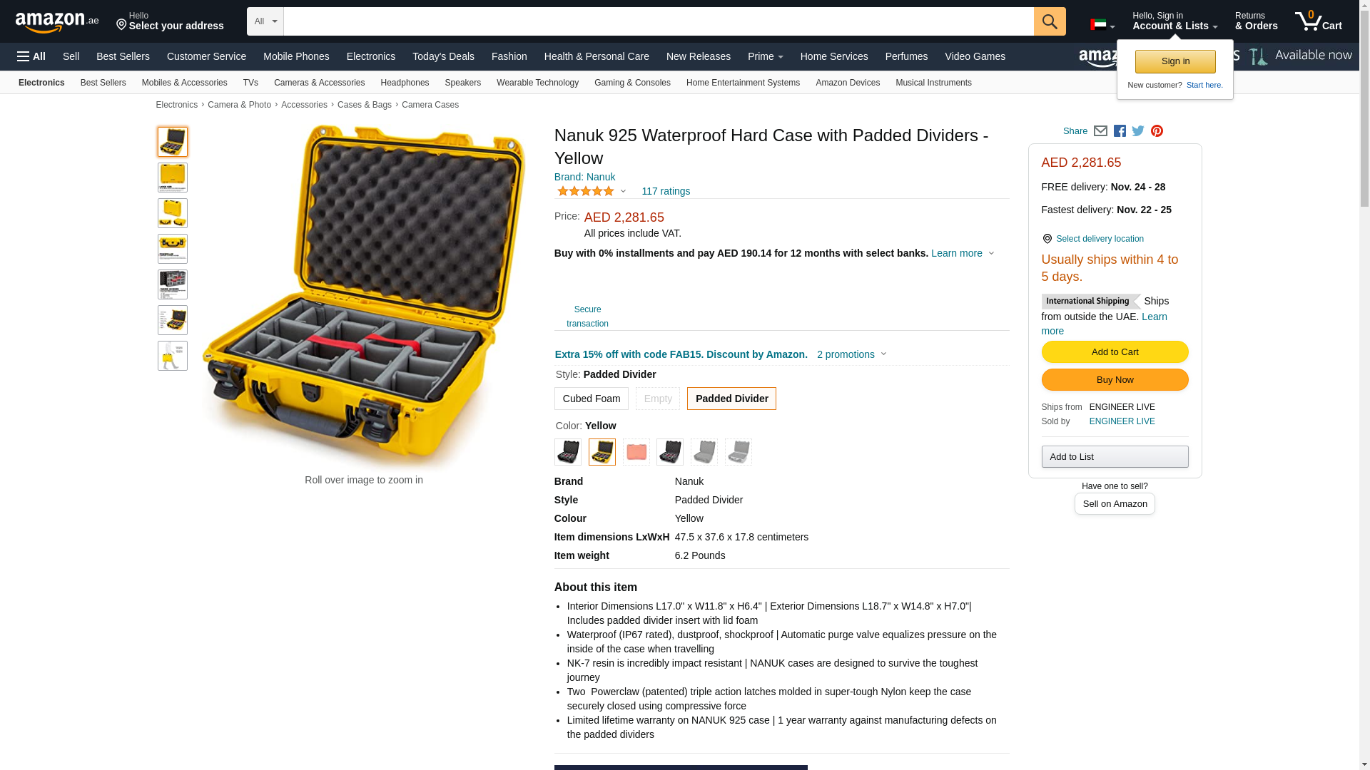 Nanuk 925 Waterproof Hard Case with Padded Dividers - Yellow