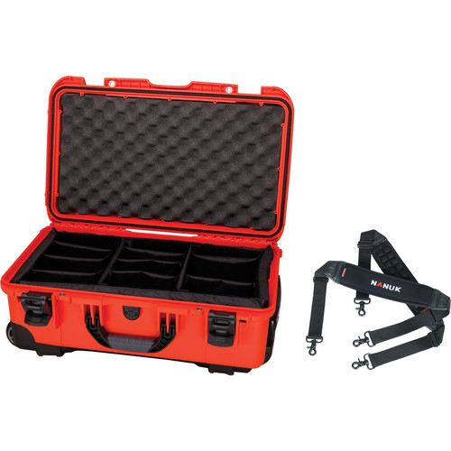 Nanuk 935 Waterproof Hard Case with Wheels and Padded Divider w/Strap - Orange