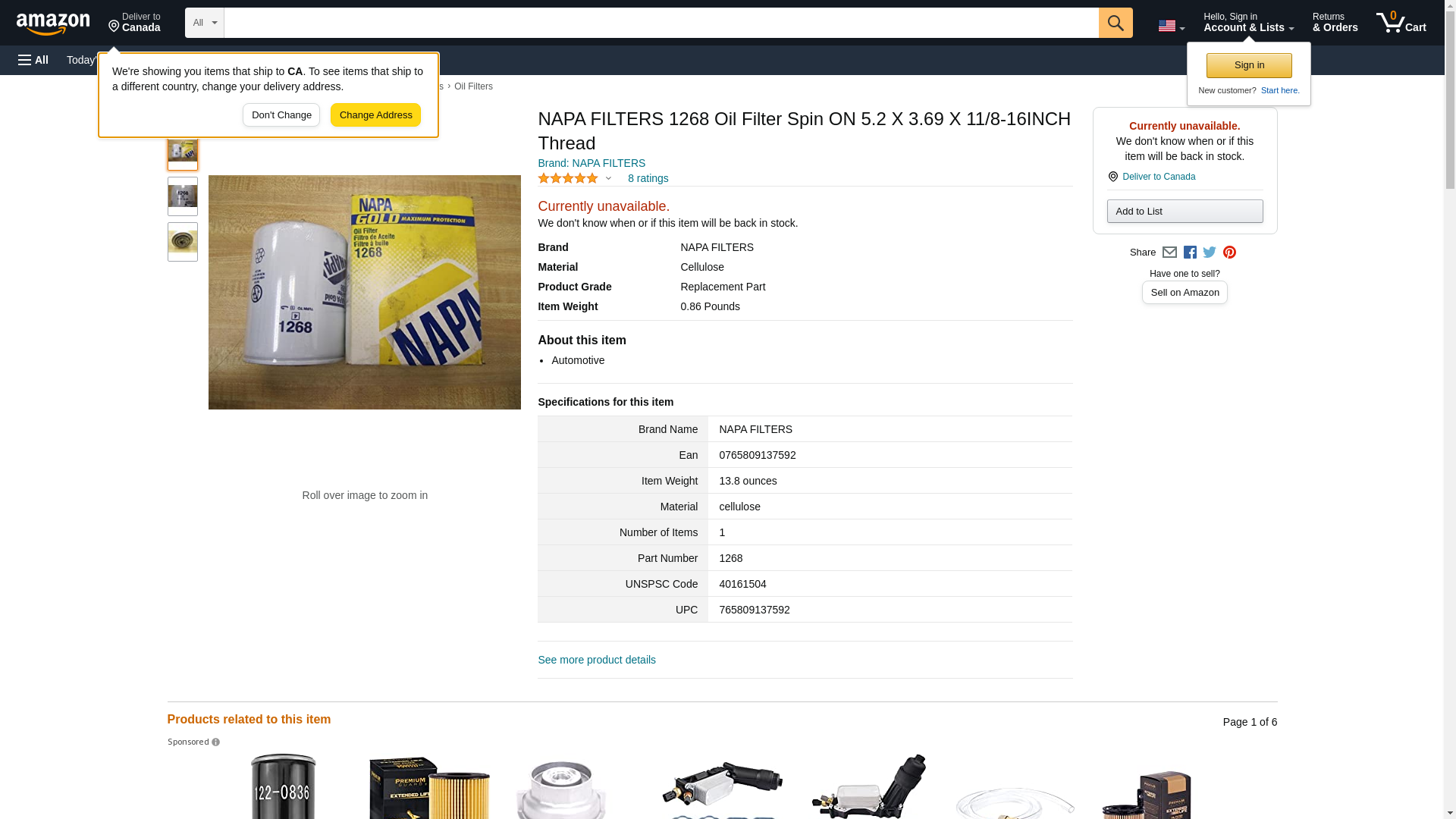 NAPA FILTERS 1268 Oil Filter Spin ON 5.2 X 3.69 X 11/8-16INCH Thread