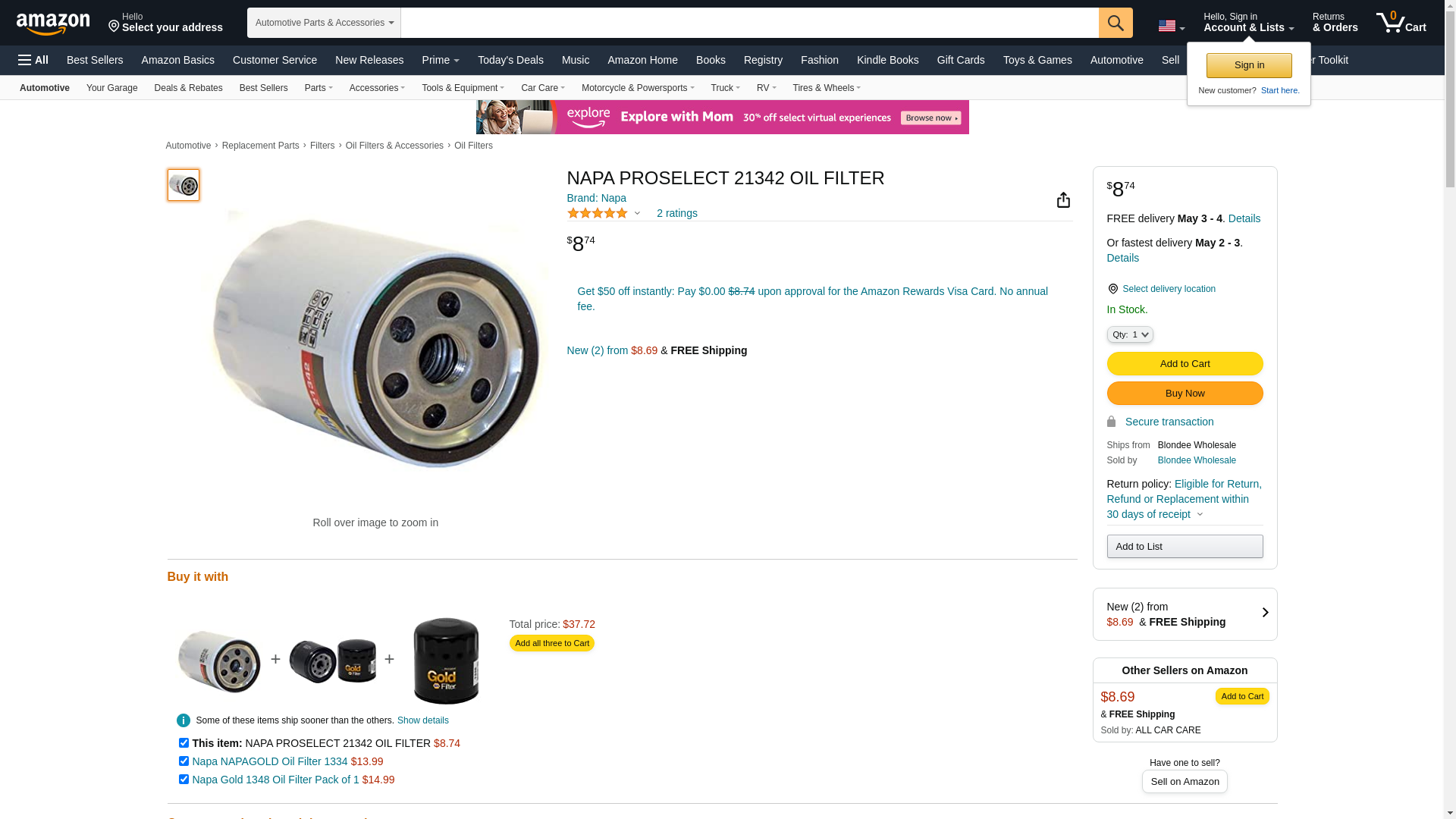 NAPA PROSELECT 21342 OIL FILTER
