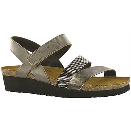 The Krista is a three-strap sandal with a hook and loop strap at the instep and a backstrap for added stability and support. This style features a rhinestone strap to give it that dressier look. Naot's anatomic cork and latex footbed is wrapped in a pampering suede and molds to the shape of the foot with wear.
