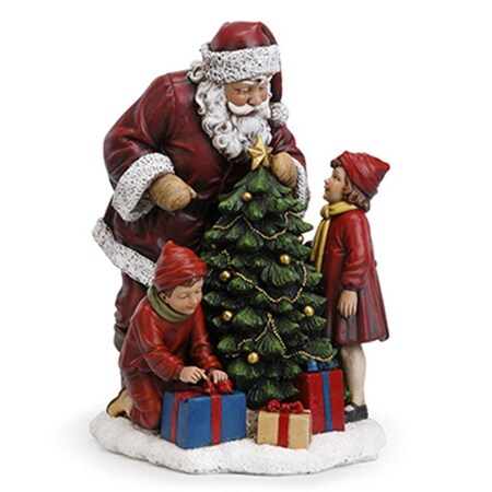 Santa Claus with Children and Tree 15 Inch Resin Christmas Tabletop Figurine