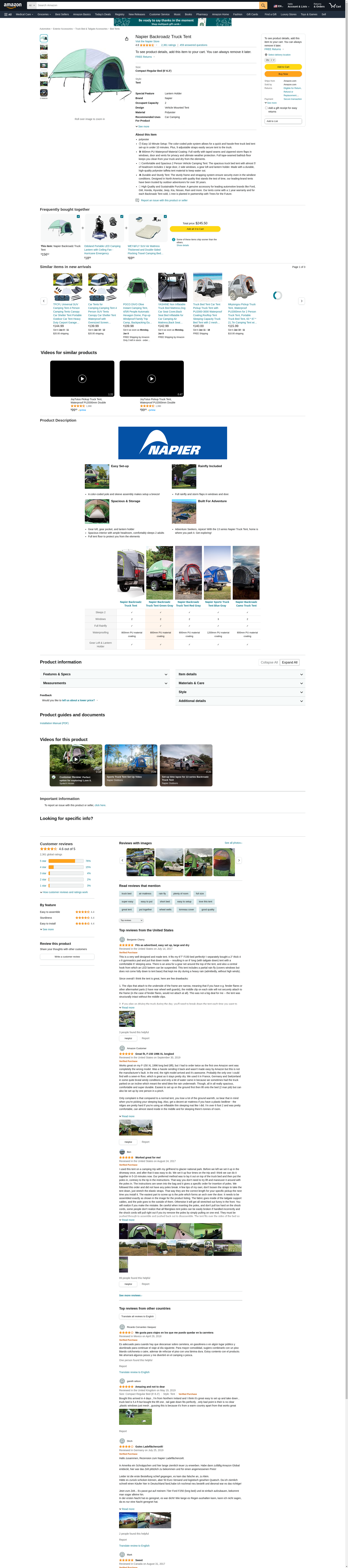 - 🚙 Comfortable and Spacious 2 Person Vehicle Camping Tent: The spacious truck bed tent with almost 5' of headroom includes 1 large door, 2 side windows, a gear loft and lantern holder. Made with a durable, high-quality polyester taffeta tent material to keep water out.
