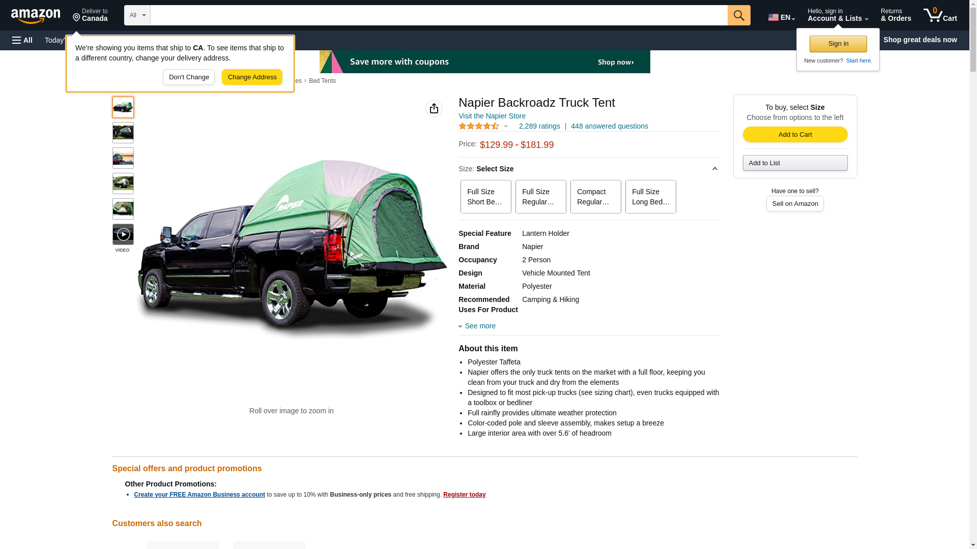 Napier Backroadz Truck Bed with Waterproof Material Coating, Comfortable and Spacious 2 Person Camping Tent, Waterproof Bed Tent, Durable and Sturdy Tent - Green/Tan, Compact Regular Bed (6'-6.3')