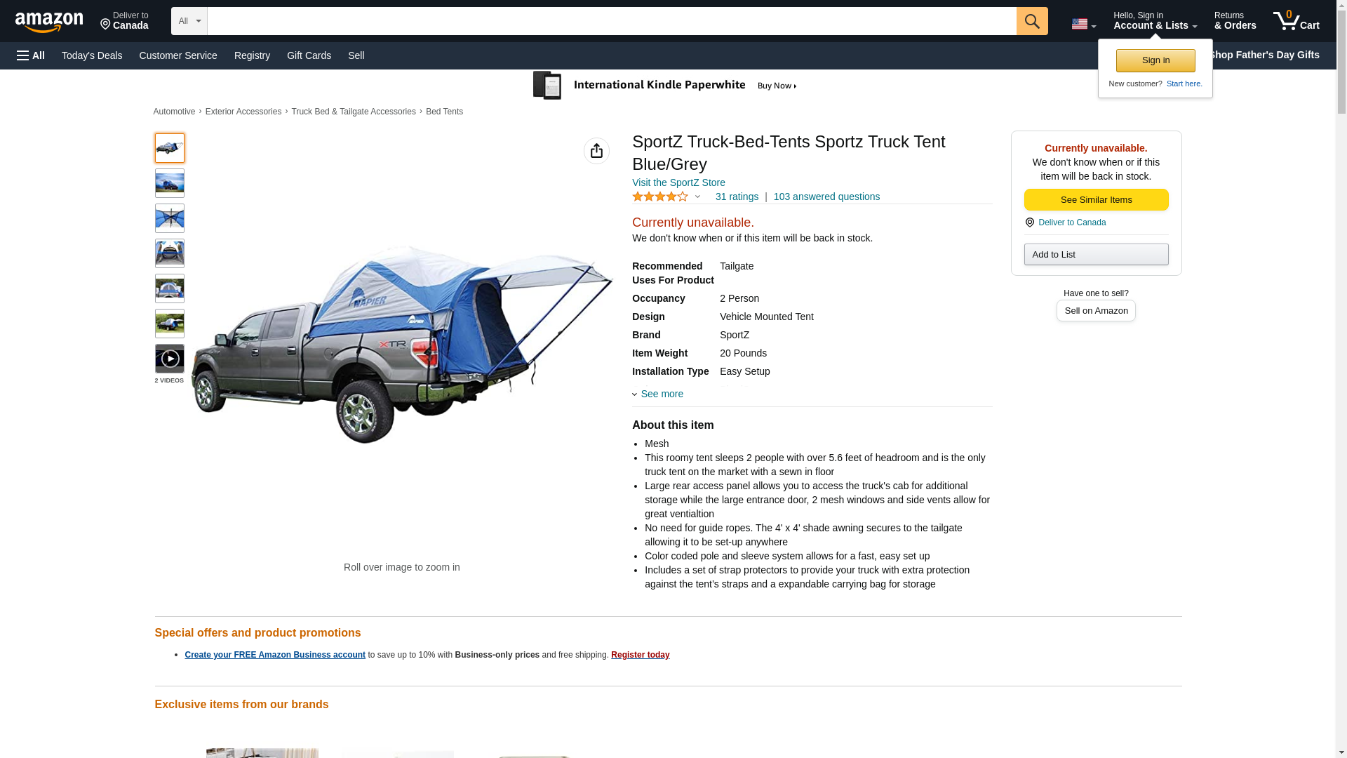 | Feature | This roomy tent sleeps 2 people with over 5.6 feet of headroom and is the only truck tent on the market with a sewn in floor |